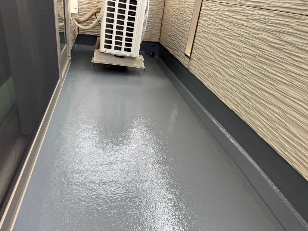 施工後は光沢が均一に広がり、見た目にも美しく、機能性も向上したベランダへ生まれ変わりました。