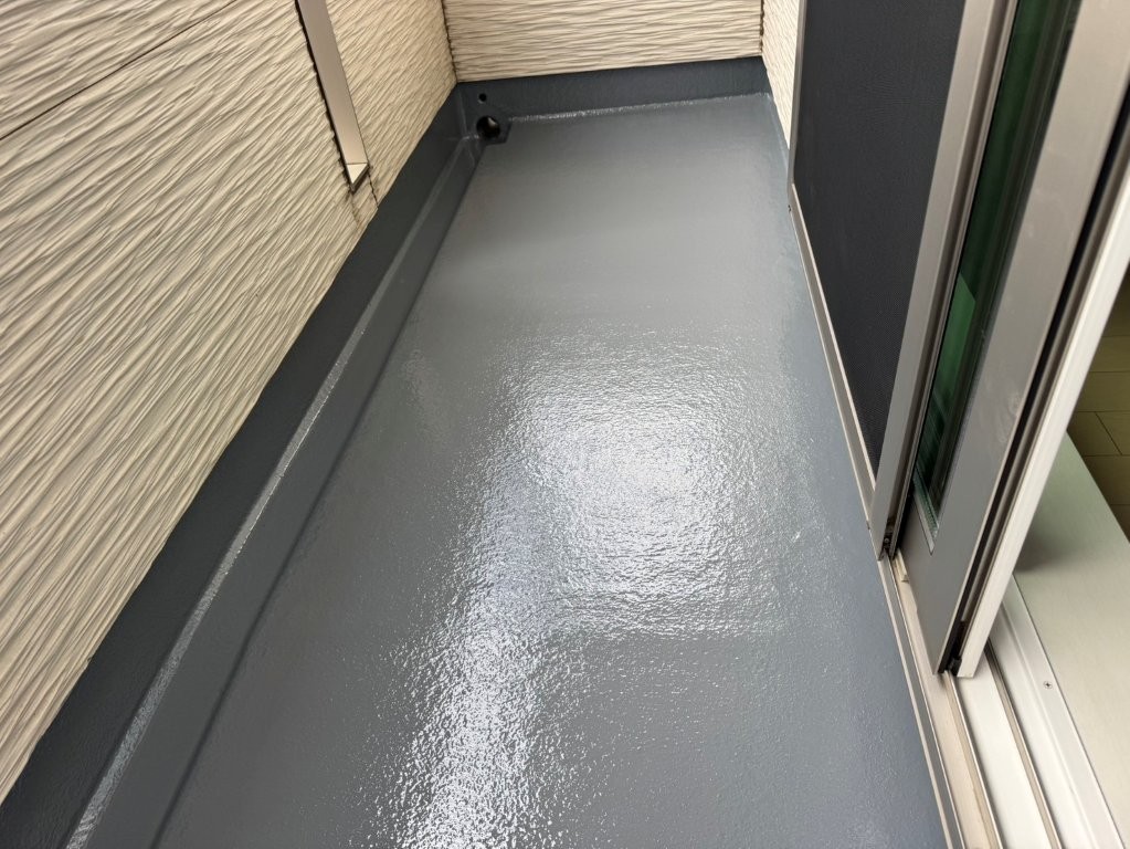 施工後のベランダは、グレーが引き締まり、新築のような光沢と清潔感のある仕上がりになりました。