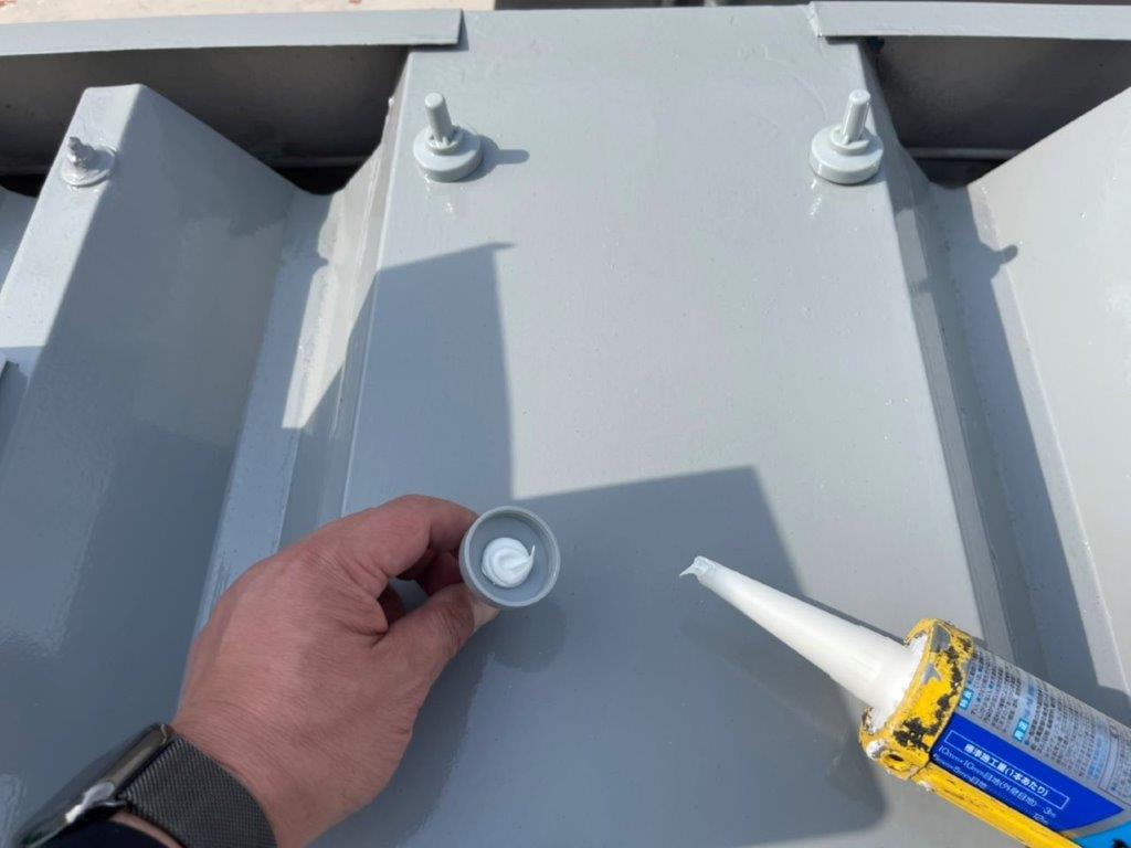 屋根のボルトキャップ取付・上塗り塗装(2回)