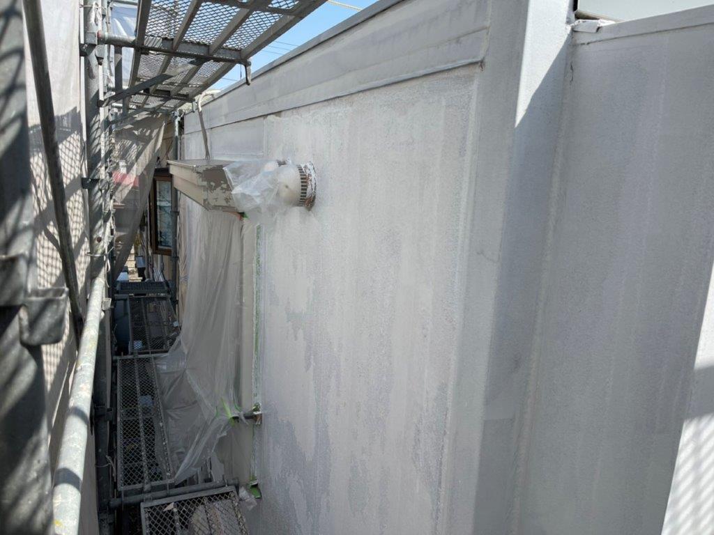 【東京都町田市】外壁・破風板・軒天の中塗り塗装(主材1回目)で塗膜を強化|K様邸 外壁塗装工事