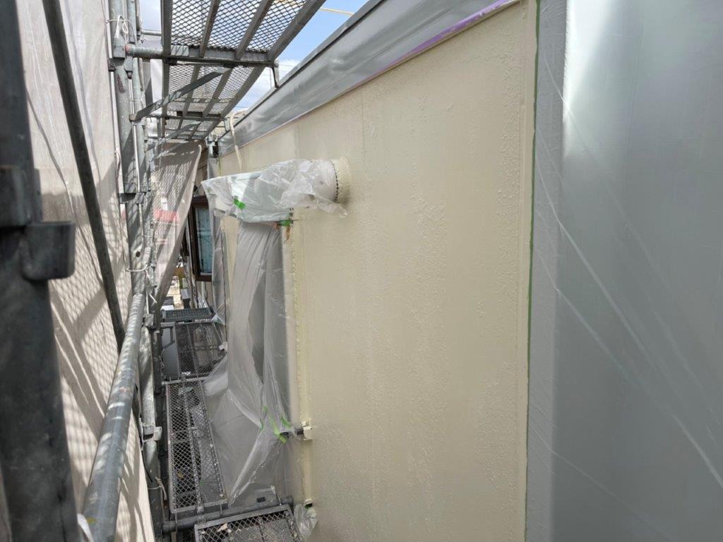【東京都町田市】外壁・破風板・軒天の中塗り塗装(主材1回目)で塗膜を強化|K様邸 外壁塗装工事