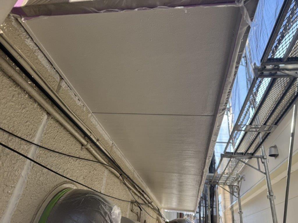 上裏の中塗り塗装(主材1回目の塗布)|神奈川県相模原市のSビルにて塗り替えリフォーム中