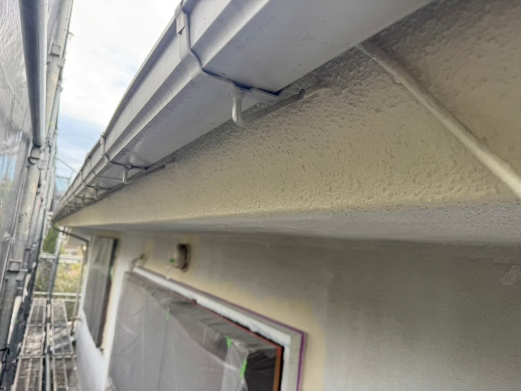 破風板・軒天ともに中塗りを施すことで、外壁全体に統一感が生まれ、雨水や湿気にも強い構造へと仕上がりました。